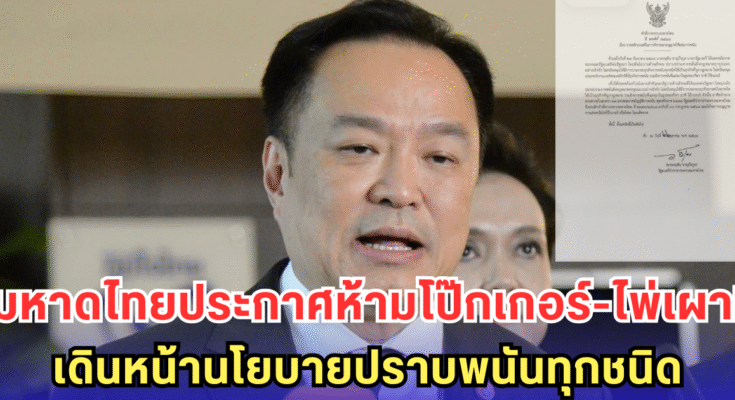 มหาดไทยประกาศห้ามโป๊กเกอร์-ไพ่เผา! เดินหน้านโยบายปราบพนันทุกชนิด